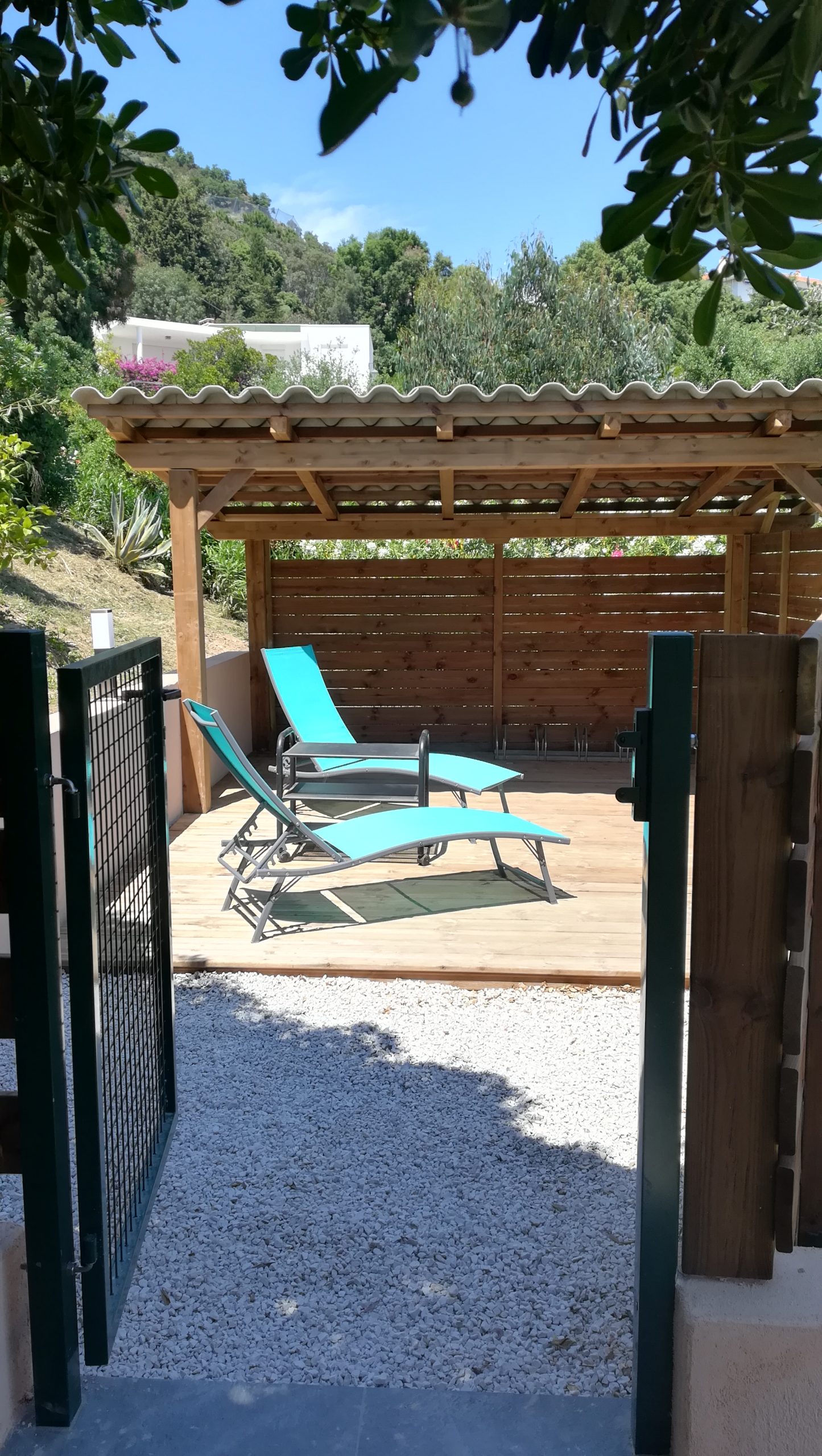 - 2021 : nouvelle terrasse avec auvent, douche solaire/pédiluve en marbre